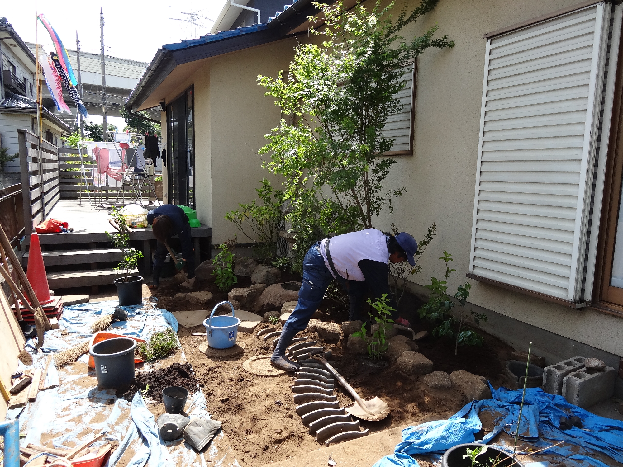 こんにちは!三好です。本日はK様邸の坪庭リフォーム工事をやらせて頂きました。